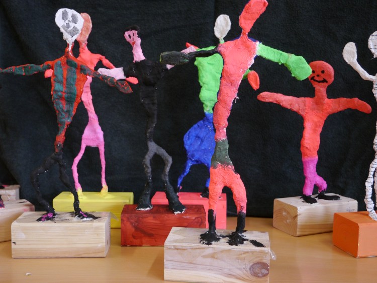Draht-Gips-Figuren auf Holzsockel
