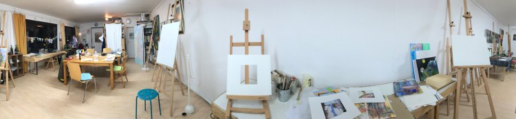 Es ist ein heller, freundlicher Raum, der Platz für viele unterschiedliche Angebote bietet, als Malatelier, Malschule und Galerie.